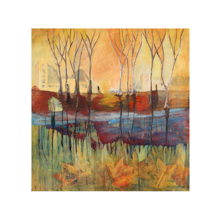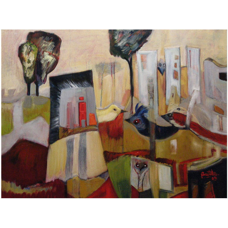 En los comienzos pinté con acrílico, posteriormente comencé a pintar con óleo. Material con el cual pinto actualmente por considerarlo más dúctil y plástico. El óleo me permite trabajar mejor las transparencias y las luces. Dejar que surja la insinuación y jugar con la magia que tiene la pintura.