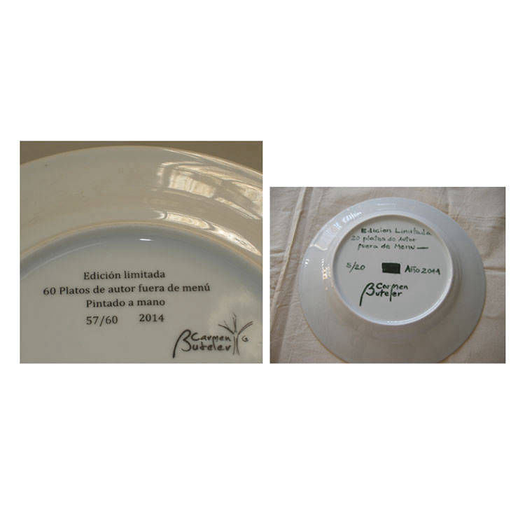 Los primeros Platos de Autor numerados y pintados a mano fueron presentados para un 20 de Junio del 2014 en el Restaurant del Hotel Azur. Donde cada comensal se llevo su propio plato donde había cenado.